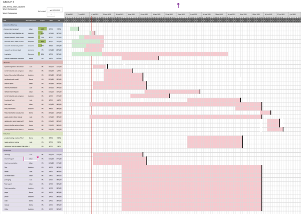 • 2022-04-14 Upload the Interim Report and Presentation to the wiki. The report must contain the the following chapters: Introduction, Project Management, State of the Art, Marketing Plan, Eco-efficiency Measures for Sustainability, Ethical and Deontological Concerns, Proposed Solution and Bibliography. In particular, the Project Management chapter includes the updated project progress register, the sprint report for completed sprints (tasks that were included, statuses, assignees, allocations) and the updated release Gantt chart